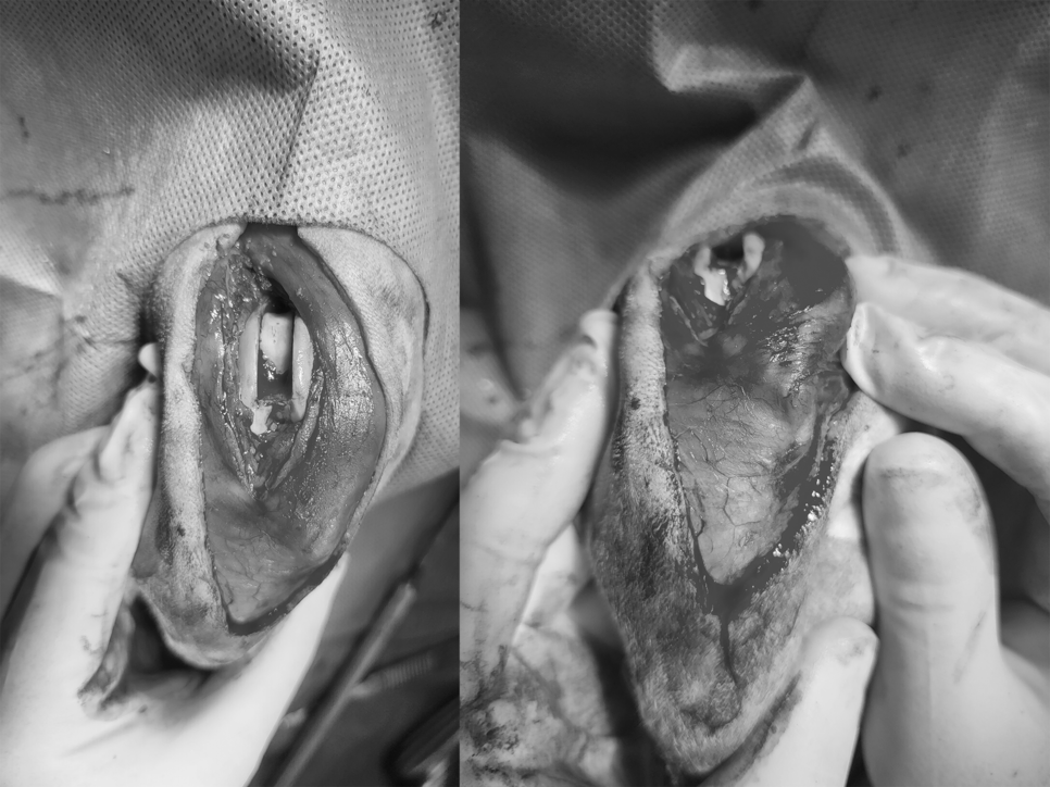 환자의 수술 전 / 수술 후 사진입니다. 활차구 성형술을 진행하여, 얕게 있던 고랑을 깊게 파 주었습니다.